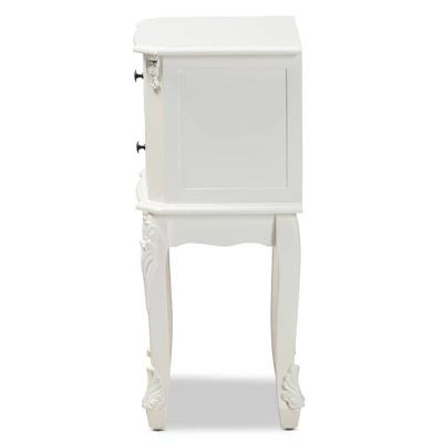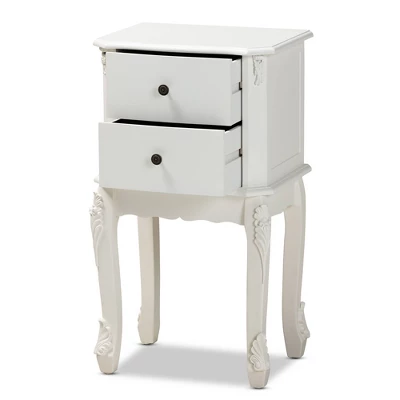Elevate your interior with the quiet elegance of the Sophia end table. Made in China, the Sophia is fitted with two drawers to provide plenty of space for household necessities. Clean angles and stylish molding decorate the Sophia for a classic look that complements its convenient design. The Sophia requires assembly and features engraved metallic knobs for an added touch of glamour. Cabriole legs complete the look, making the Sophia a functional and stylish fit for any arrangement. Dimensions: 29.9″ high x 16.5″ wide x 12.6″ deep; Drawer dimensions: 4.7″ high x 12.6″ wide x 9.4″ deep; Legs: 12.6″ high;
