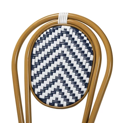 Bring the charm of the classic French bistro to your home with the Alaire dining chair. Made in China, this chair is constructed from aluminum with a high backrest that provides ergonomic support and comfort. This stackable dining chair is designed for everyday use and is superbly suited for a deck, balcony or indoor space. Fully assembled, the Alaire features a bamboo style frame with multi-color accents. An expressive addition that complements a wide range of room layouts and styles, the Alaire dining chair brings ornate personality to the modern home. Dimensions: 35.00″ High x 16.90 ” Wide x 23.60″ Deep; Seating Area Dimensions: 17.30″ High x 16.50″ Wide x 16.50″ Deep;