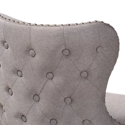 Featuring chic, modern design, the Gradisca counter stool is a superb addition to any kitchen or lounge area. Made in Malaysia, this sleek piece consists of a solid wood frame padded with foam and upholstered in soft fabric. Its cut-out backrest features a gorgeous button tufted design outlined by an elegant nail head trim for a touch of modern glamour. The Gradisca requires assembly and features ergonomic footrests on each side for enhanced comfort. A swivel seat encourages carefree leisure, making the Gradisca counter stool a lovely choice for any occasion. Overall: 21.50″ W x 21.90″ D x 40.60″ H; Seating: 19.50″ W x 17.30″ D x 26.60″ H; Backrest: 15.00″ H; Clearance: 18.50″ H;