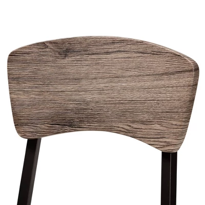 Smooth and functional, the Marcus dining set gives any dining space a relaxed, casual feel. Made in China, the Marcus set is adorned with wood finished in an oak brown and comfortably sits up to four. This dining set is supported by sturdy, black finished metal that complements the lighter tones of the wood. Assembly is required and a long, rectangular tabletop offers plenty of elbow room for each person. A unique fusion of metal and wood craftsmanship create a striking contrast that allows the Marcus to stand out as a fixture of the dining room. Table Dimensions: 29.5″ high x 43.3″ wide x 27.6″ deep; Legs: 28.5″ high; Chairs Dimensions: 32.3″ high x 17.5″ wide x 18.1″ deep; Seating dimensions: 16.3″ wide x 15.4″ deep x 17.5″ high (from Floor); Back: 14.8″ high; Legs: 16.5″ high;