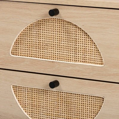 Combining retro design with modern geometry, the Ardon end table brings value to your interior. Made in China, this striking piece combines natural rattan with a sturdy wood and metal frame for a tranquil, carefree display that exudes warmth. Two drawers provide secure storage space for household essentials while reserving the tabletop for daily use. Requiring assembly, the drawers of the Ardon feature natural rattan accents for a charming, exotic touch. With a crisp and clean silhouette, the Ardon adds character to any shared space. Overall Dimensions: 20.90″ High x 15.70″ Wide x 15.70″ Deep; Legs: 5.10″ High; Drawer Dimensions: 13.50″ Wide x 11.77″ Deep x 4.52″ High;