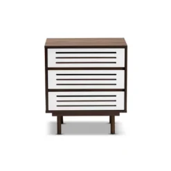 3 Drawer Meike Two-Tone Wood Nightstand Walnut/White – Baxton Studio