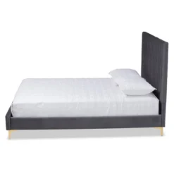 Queen Serrano Velvet Fabric Upholstered And Metal Platform Bed Gray/Gold – Baxton Studio
