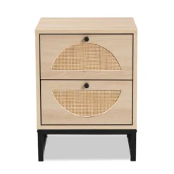 Baird Wood And Rattan 2 Drawer Nightstand Brown – Baxton Studio