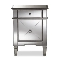 Baxton Studio Mina Mirrored 2 Drawer Nightstand Bedside Table Silver – BaxtonStudio