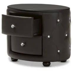 Davina Hollywood Glamour Style Oval 2 – Drawer Faux Leather Upholstered Nightstand – Baxton Studio