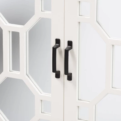 Bring chic organization to your dining room with the fantastic design of the Carlena sideboard. Made in Malaysia, this sideboard is constructed from solid wood. Two large shelves behind the doors offer ample storage space for cookware and appliances. The Carlena will arrive fully assembled and showcases a geometric design in its doors embedded with mirrors for a sleek, contemporary display. A beautiful culmination of convenience and style, the Carlena sideboard elevates the efficiency of any dining room.