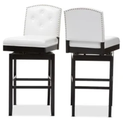 Set Of 2 Ginaro Faux Leather Button Tufted Upholstered Swivel Barstools White – Baxton Studio