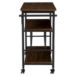 Capri Oak And Finished Mobile Metal Bar Cart With Stemware Rack Brown – Baxton Studio