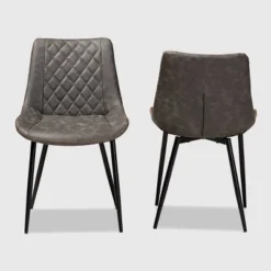 Set Of 2 Loire Faux Leather Upholstered Dining Chair Gray/Black – Baxton Studio