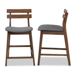 Set Of 2 Minette Fabric Upholstered Wood Dining Chairs Gray/Walnut – Baxton Studio