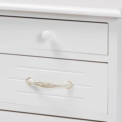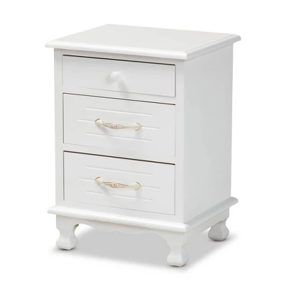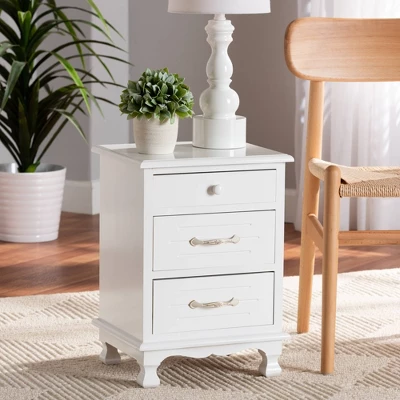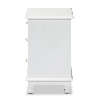 The stunning Layton end table brings modern convenience to your home while exuding traditional grace. Made in China, this end table is crafted from sturdy wood. Three drawers provide ample storage space for a variety of household essentials while molded accents showcase the expert craftsmanship. Comes fully assembled, the Layton features a unique visual texture with scalloped edges and shallow perforations. A charming yet efficient addition, the Layton end table elevates the modern home. Overall Dimensions: 19.70″ High x 14.20″ Wide x 11.80″ Deep; Drawer Dimensions: 11.40″ Wide x 10.20″Deep x 5.30″High; Legs: 2.40″ High;