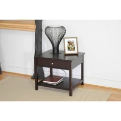 Emmett Wood 1 Drawer End Table Light Brown/Gold – Baxton Studio