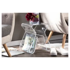 Lida Glass And Wood Finished End Table Clear/Natural – Baxton Studio