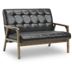 Sorrento Mid-Century Retro Modern Faux Leather Upholstered Wooden 2 Seater Loveseat – Baxton Studio