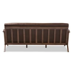 Bianca Mid-Modern Walnut Wood Distressed Faux Leather 3 Seater Sofa Dark Brown – Baxton Studio