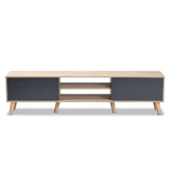 2 Drawer Rikke Two-Tone Wood TV Stand For TVs Up To 65″ Gray – Baxton Studio