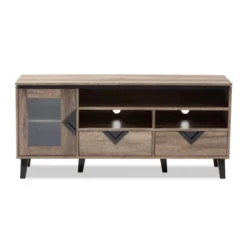 2 Door Arend Two-Tone Wood TV Stand For TVs Up To 55″ Brown – Baxton Studio