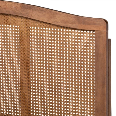 Cultivate a vintage chic vibe in your bedroom with the Marieke bed. Constructed from wood, the Marieke displays a walnut brown finish that adds warmth to any space. The headboard features exquisitely woven synthetic rattan embedded within wood for a light, airy feel. Stylish and versatile, the back of the headboard features six pre-drilled holes to provide five different height configuration options. Classic saber legs complement the headboard and give the Marieke a charming, French-inspired look. The Marieke bed is made in Malaysia and requires assembly.