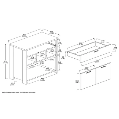 - One (1) drawer and one (1) shelf behind the doors