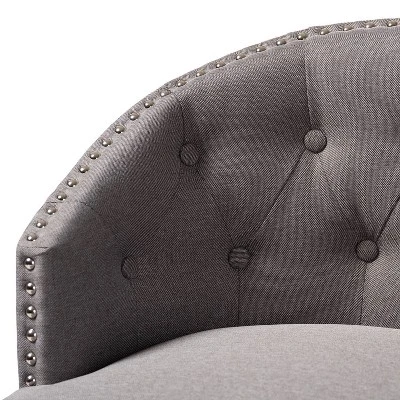 Set of 2 Bring happy hour to your home with the elegant Theron bar stools. Constructed from solid rubberwood, the Theron showcases a stunning dark brown finish. The seat and back are upholstered in polyester fabric and padded with foam for endless comfort as you sip cocktails. A built-in foot rest provides additional comfort, while button tufting and silver-finished nailheads add a touch of glamour. Equipped with swivel capability, the Theron is well suited for both a kitchen or bar setting. The Theron bar stool is made in Malaysia and requires assembly. Dimensions: 41.9″ High x 22″ Wide x 22″ Deep; Seating Dimensions: 30.9″ High (from Floor) x 17.3″ Wide x 17.7″ Deep; Back: 11″ High; Legs: 25″ High