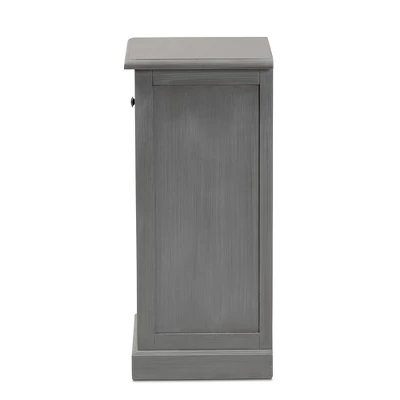 With a crisp, contemporary outline, the Sheldon nightstand brings modern convenience to your bedside. Made in China, this nightstand is constructed from sturdy wood featuring a neutral gray finish that complements any interior style. Three drawers provide secure storage for bedside essentials while reserving the tabletop for nightly use. Woven synthetic rattan drawer faces lend vintage charm. Fully assembled, the Sheldon features inset detailing that lends visual depth and showcases fine craftsmanship. One antique brass finished metal knob completes the look, making the Sheldon nightstand a fantastic upgrade to the modern home. Dimensions: 27.60″ High x 15.70 ” Wide x 12.60″ Deep; Top Drawer Dimensions: 5.90″ High x 11.80″ Wide x 10.80″ Deep; Bottom Drawers Dimensions: 7.10″ High x 11.80″ Wide x 10.80″ Deep;