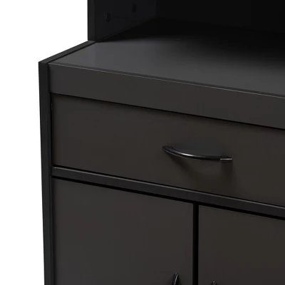 Practicality and minimalist style come together with the Tannis kitchen cabinet. The modern and contemporary-inspired design is clear to see in the rectangular silhouette and subtle grooved features. The Tannis’s engineered wood frame is finished in a sophisticated dark grey finish. The cabinet features two shelf spaces behind discreet doors, and a drawer on top of them for additional storage. The Tannis’s top compartment has ample space for a microwave, with a cut-out in the back panel for wire management. The drawer and door handles are finished in black to complete the sleek look. The Tannis comes with castors for mobility, so this cabinet can provide storage for utensils and dishware, and can be moved easily for cleaning. Made in Malaysia, the kitchen cabinet requires assembly.