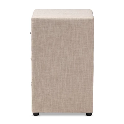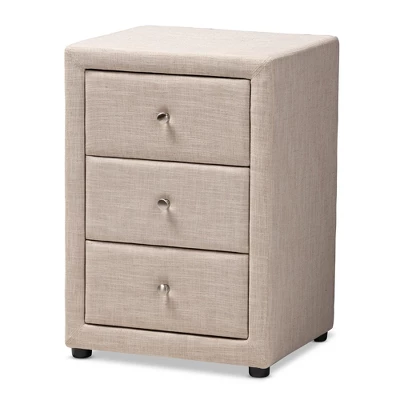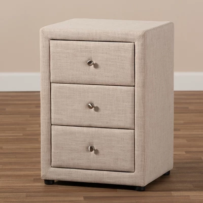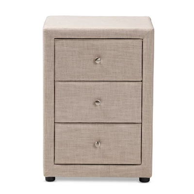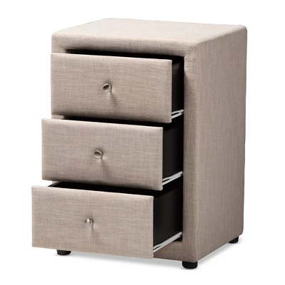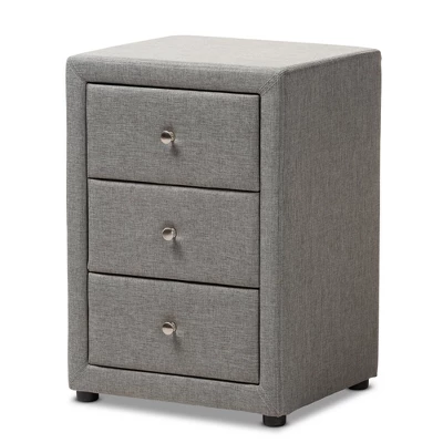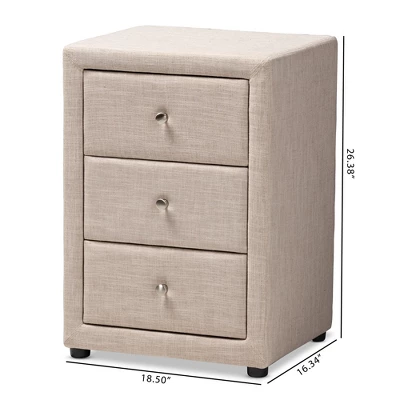 The Tessa 3-Drawer nightstand exemplifies how minimalism can be chic and sophisticated. The modern and contemporary-inspired design emphasizes clean lines and smooth surfaces. The Tessa features a foam-padded plywood and hardwood frame with all-over fabric upholstery. The chrome-finished drawer knobs provide a contrast to the upholstery as an additional style element. The Tessa also features three pull-out drawers on gliders, giving you more storage options at your bedside. The simplistic design makes this nightstand easy to coordinate with the existing decor in your bed room or guest room. Made in Malaysia, the Tessa requires assembly. Dimensions: 26.38″ High x 18.5″ Wide x 16.34″ Deep; Drawers: 5.71″ High x 12.83″ Wide x 12.83″ Deep