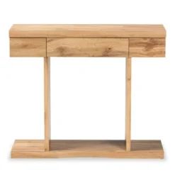 - Has one drawer right below the two open shelves